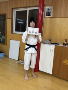 高校生拳士が修学旅行から帰りお土産を持ってきてくれました